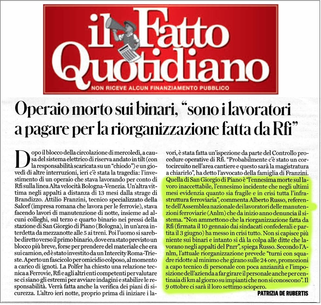 Come avrete letto e visto, ieri (05/10/2024 N.d.R.) per la prima volta siamo riusciti ad avere attenzione dai media, fatto molto positivo, ma che ci deve far comprendere due cose: la prima è che quando ciò che accade esce dal perimetro in cui siamo relegati noi, l’azienda e i firmatari, l’effetto è dirompente. Questo è vitale per la nostra lotta, perchè costringe tutti alle proprie responsabilità; la seconda però è che ci vuole il morto perchè qualcuno reagisca e non possiamo auspicare questo. Pertanto siamo ancora più convinti che quello che dobbiamo cercare di fare è rendere le nostre ragioni visibili, ma dobbiamo riuscire a farlo a prescindere dalle tragedie. Quindi diamoci da fare, abbiamo le giuste ragioni per riuscirci.
